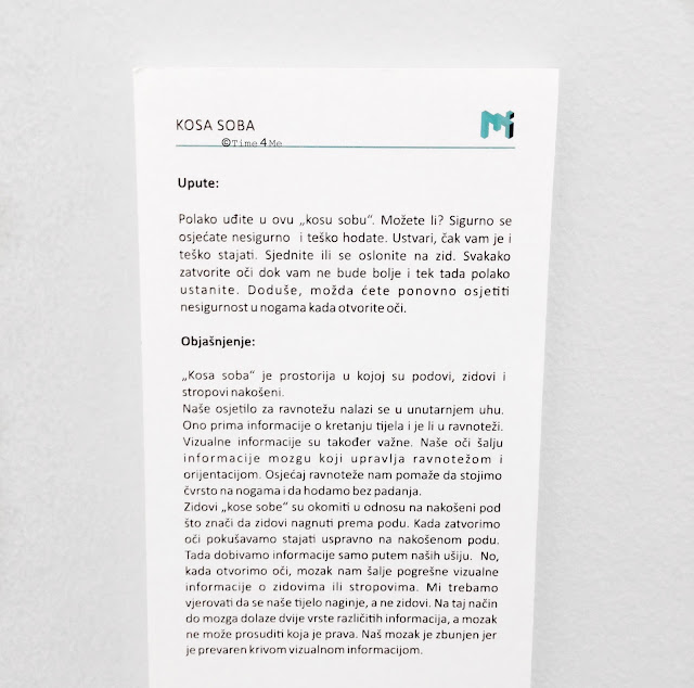 I oduševila sam se. Najbolji su mi interaktivni eksponati poput glave na pladnju, anti-gravity sobe, ames sobe i sobe ogledala. Neke eksponate ste sigurno imali prilike već vidjeti na internetu, poput nekih optičkih iluzija, ali mislim da je dojam puno bolji kada ih vidite uživo. Muzej se nalazi u Ilici 72, a cijena ulaznice je 40 kuna (nema popusta za studente). Toplo vam preporučam da posjetite ovaj zanimljivi muzej - garantiram vam da ćete se zabaviti i nasmijati. Pusa do idućeg posta, Mia!