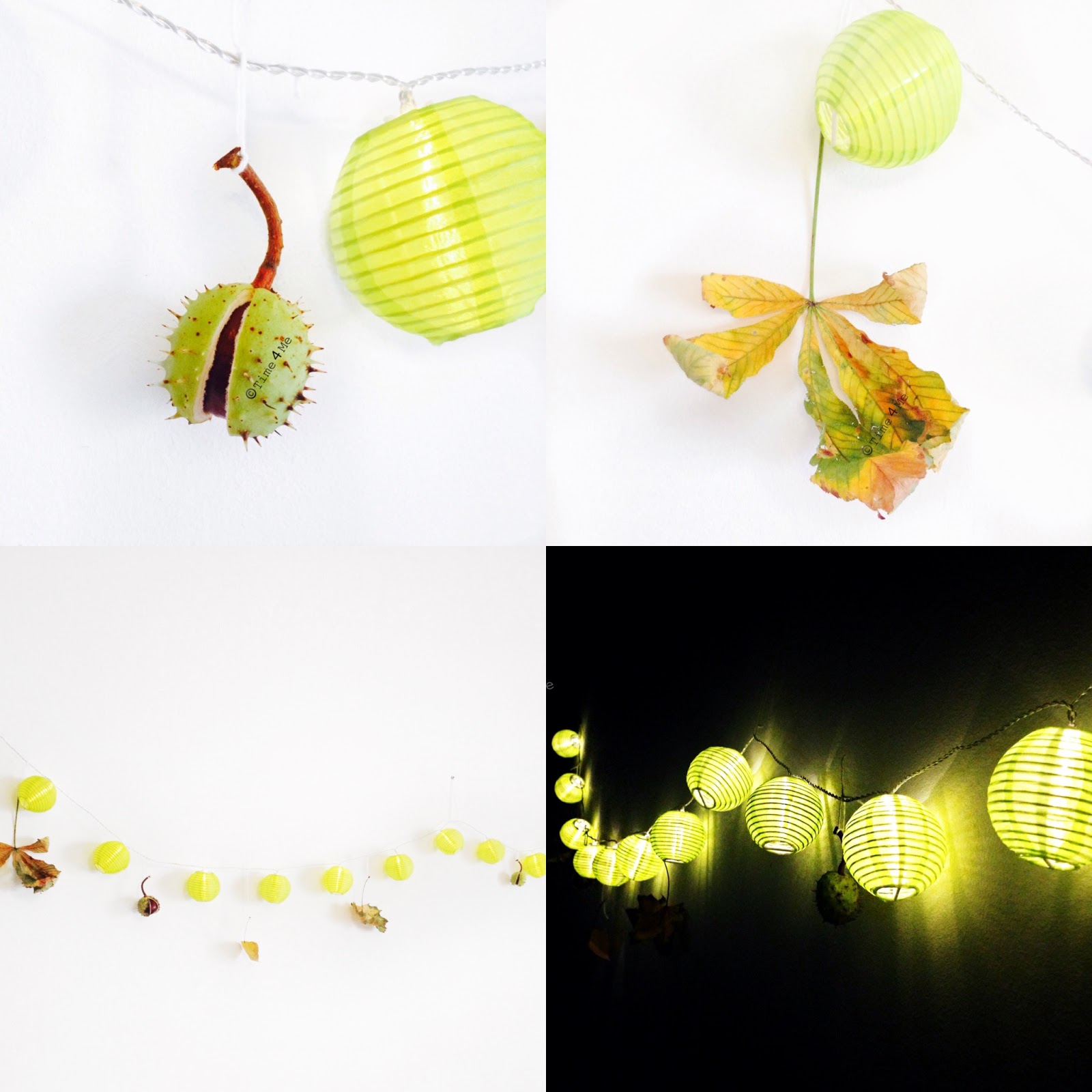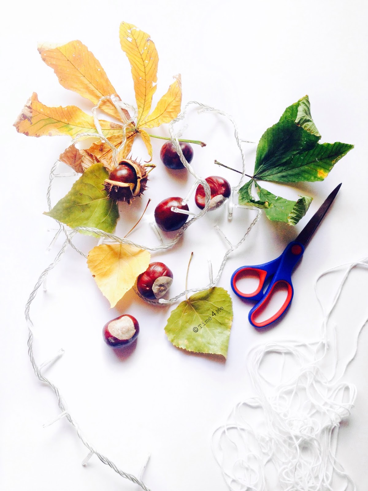 Ja sam pokupila nekoliko vrsta lišća u parku, malo kestenja i složila si jesensku košaricu i ukras sa lampicama.