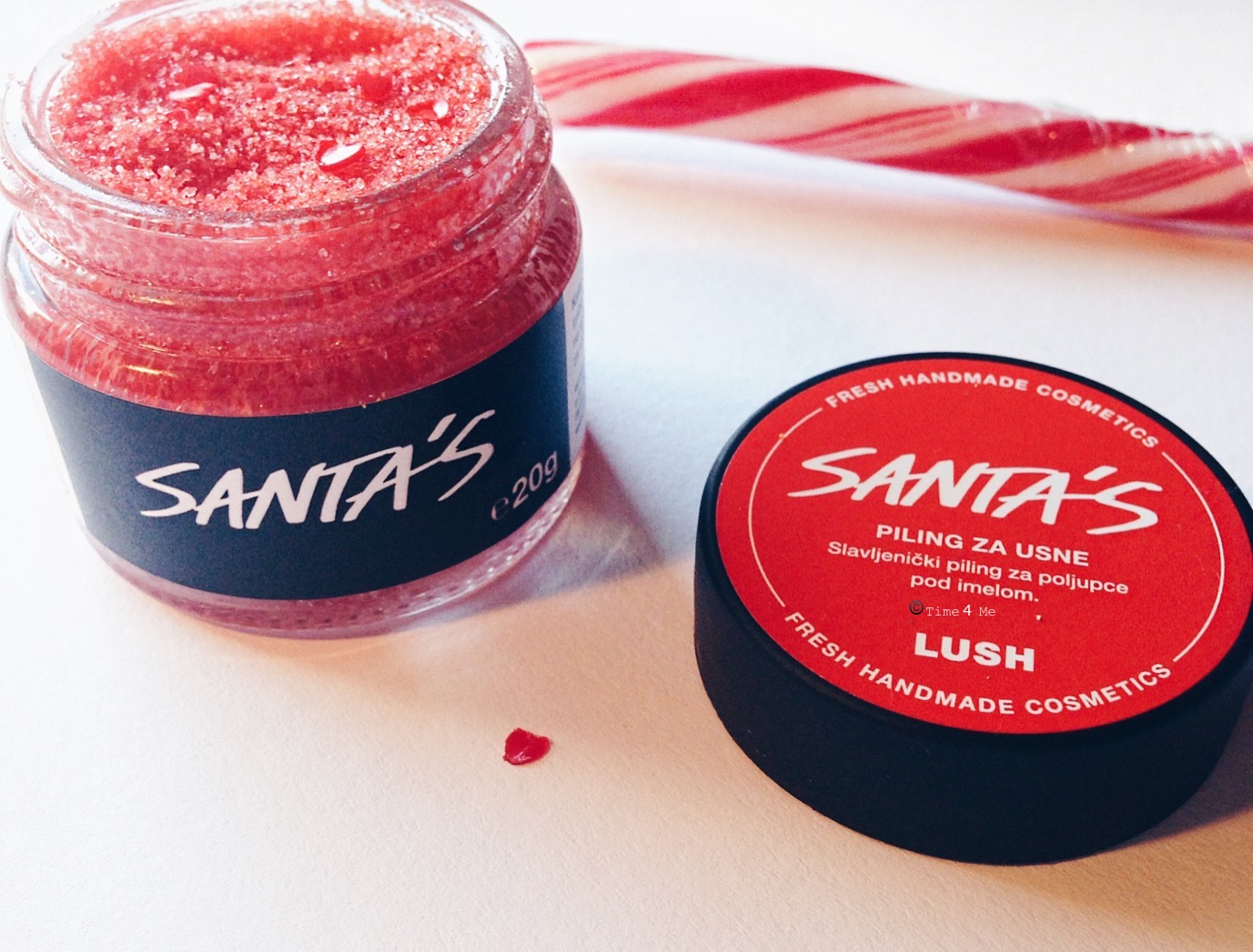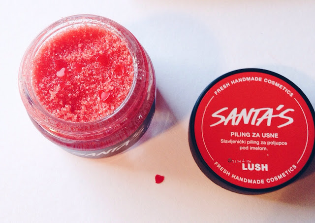 Zatim sam isprobala proizvod koji namjeravam kupiti već duže vrijeme, a kako nisam bila sigurna hoće li mi se svidjeti, pričekala sam sniženje i uzela opciju iz božićne kolekcije. Radi se o pilingu za usne, u ovom slučaju Santa's Lip Scrub. I kako to obično bude kod Lushevih proizvoda - oduševila sam se. Osim što je piling nježan, a opet dovoljno grub da ukloni mrtve stanice sa usana, u sebi sadrži i ulja koja odmah njeguju i omekšavaju usne. Pre pre predivno! Kad radim piling dođe mi da sama sebe ugrizem za usnicu i pojedem ga cijelog - eto, toliko je fin!
