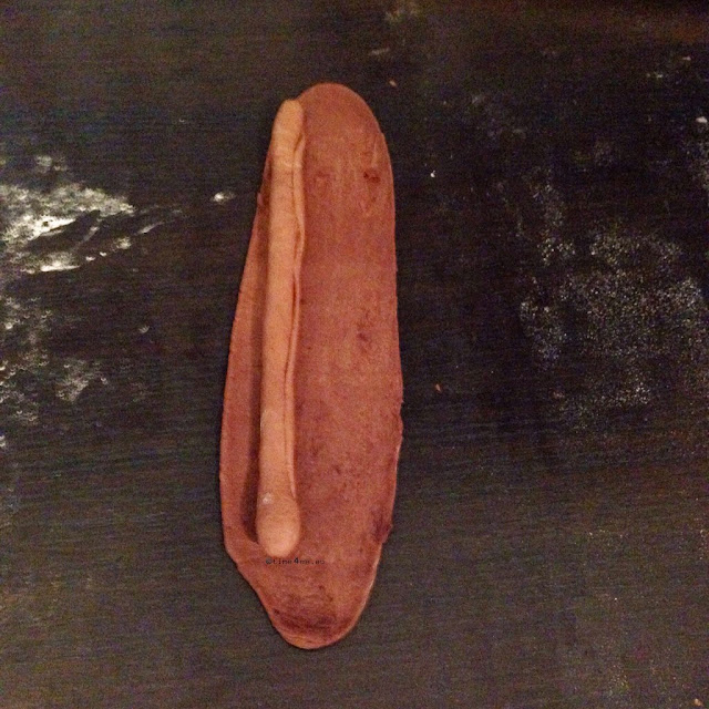 7) Te kuglice izvaljate u duguljasti ovalni oblik (skužit ćete prema slici kako bi trebalo izgledati, a meni je pomoglo da kuglice kroz ruke oblikujem u valjak i onda ga puno jednostavnije razvaljam) i onda kreće spajanje.